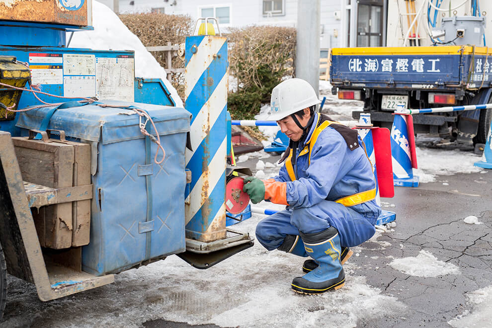 目に見えない電気を扱う現場では多くの危険が潜むため、我々は徹底したルールの順守のもと、常に厳しい環境の中で作業をしています。猛暑や大雨、吹雪の中でも街の明かりに支障があれば復旧に行きます。それはプロの技術者として誇りと地域の方々や大切な家族の笑顔を絶対に絶やさないという強い信念を持っているからこそできることです。如何なる時も安心安全の電気工事施工ができるよう日々高い向上心を持って挑戦を続けて参ります。