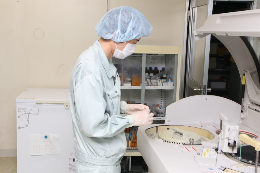 製品の試験や分析、検査機器の操作など、それぞれの専門性を活かした分担体制で、高品質な製品づくりに取り組んでいます。