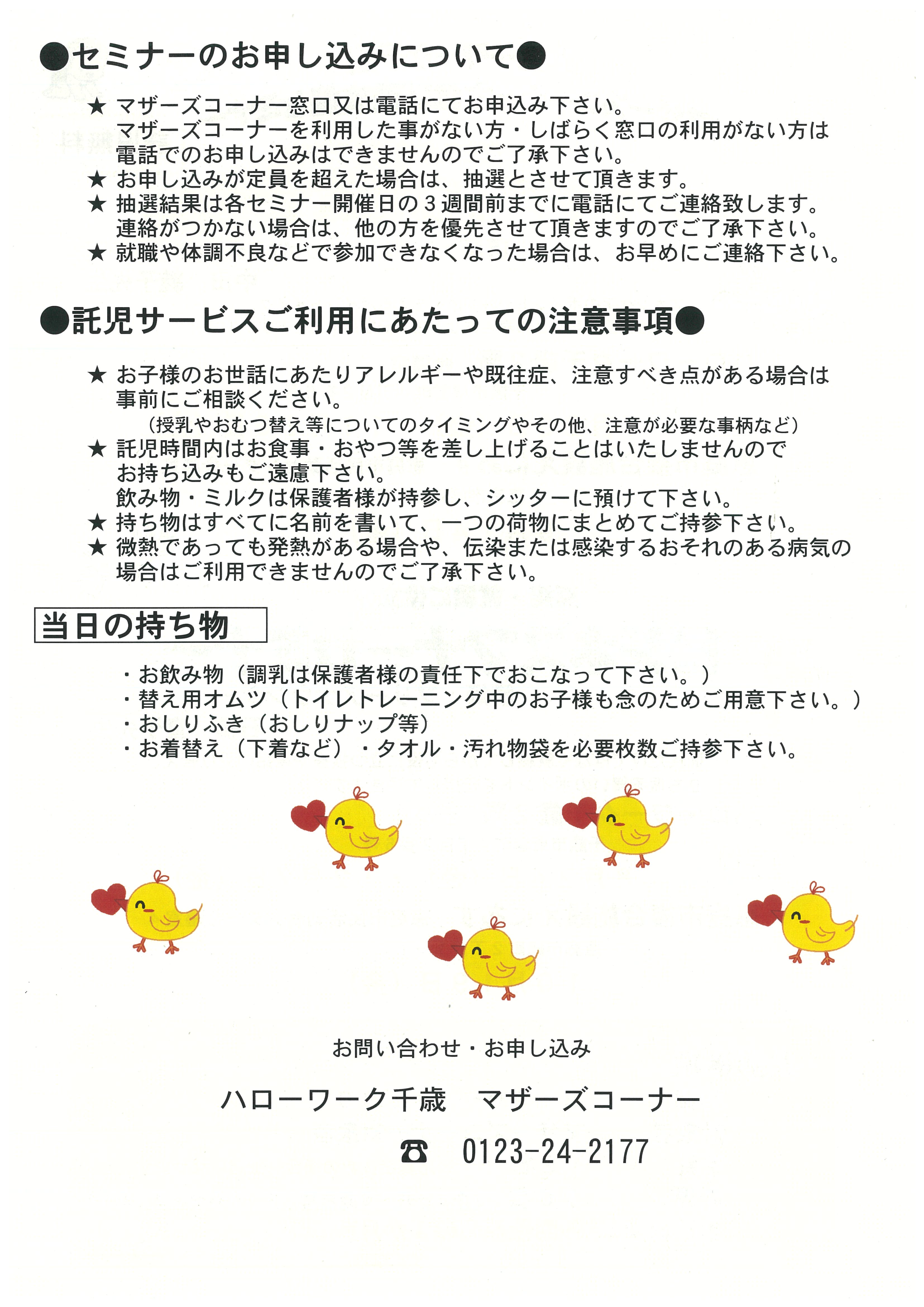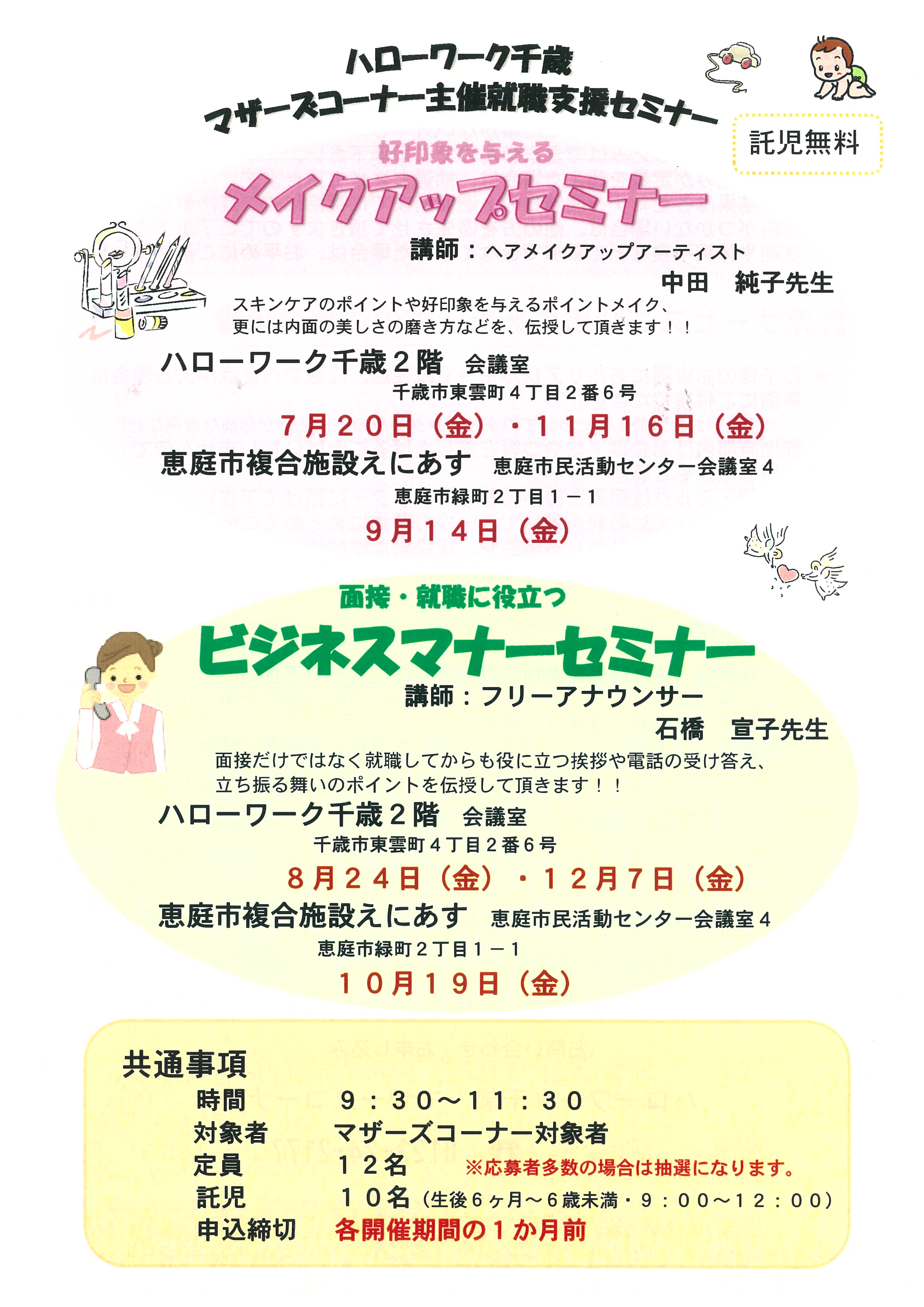 ハローワーク千歳マザーズコーナー主催 就職支援セミナー