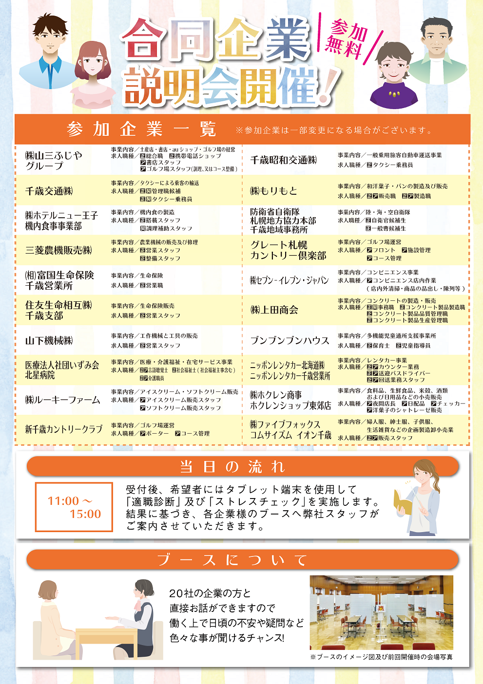 参加企業は、その後開催する合同企業説明会に参加いただけます。