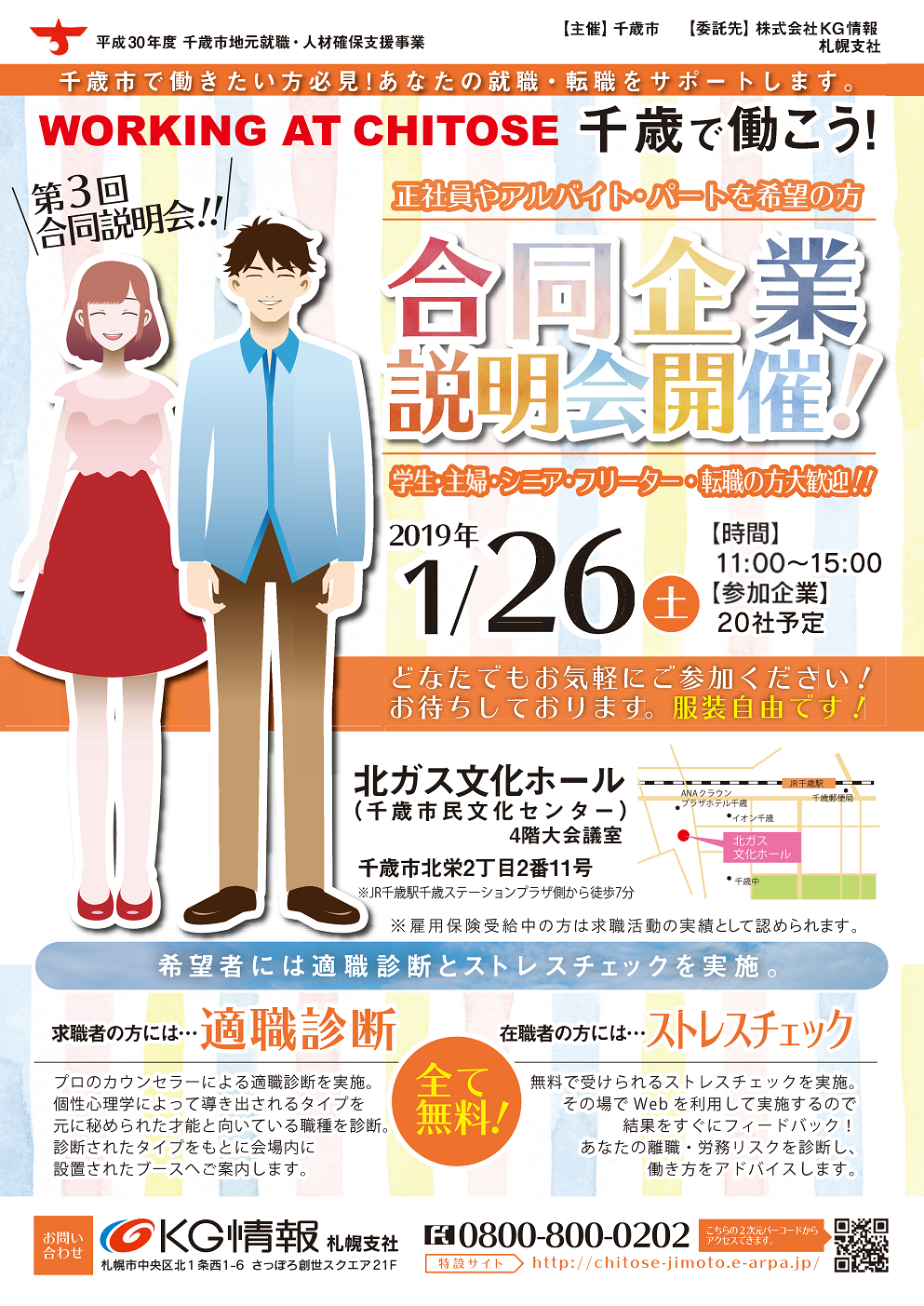 千歳市では、平成29年度から引き続き、求職者の就職支援と地元企業の人材確保支援を行う「地元就職・人材確保支援事業」を実施します。