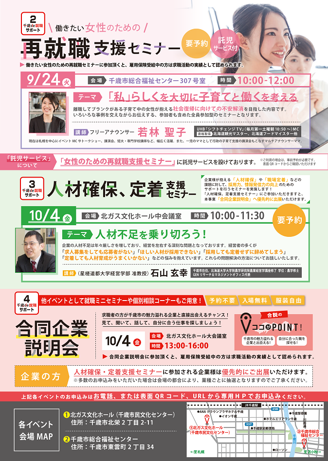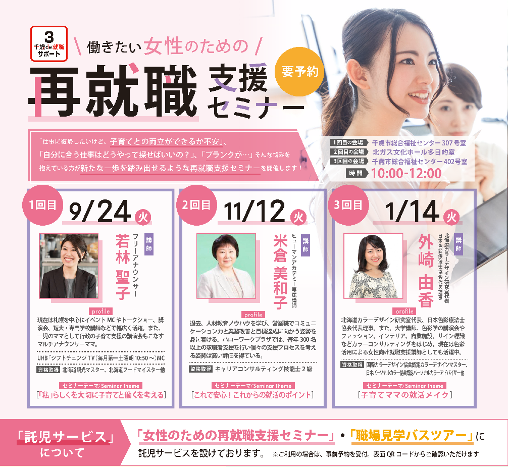 千歳市では、地元就職・人材確保支援事業の一環として、「女性向け再就職支援セミナー」を開催します。