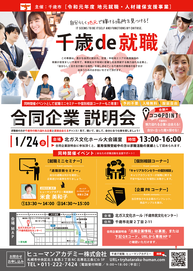 入場無料!千歳の企業とマッチング「合同企業説明会」を開催します!