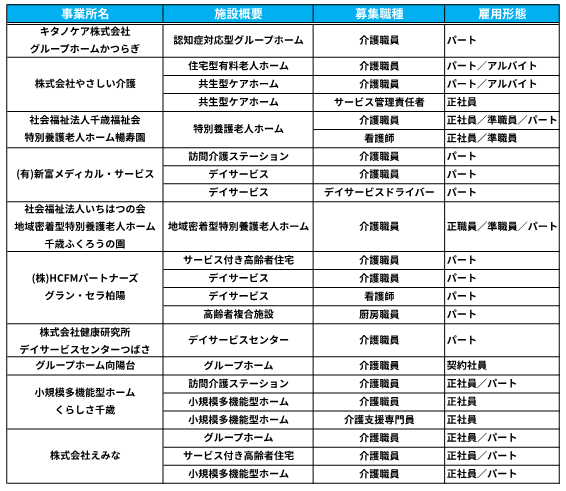 当日は、介護・福祉関係事業所10事業所が、相談ブースを出展し、仕事の内容、働く日数や時間、賃金、将来のキャリアアップなどの相談を受け付けています。来場にあたり、事前のお申込みは不要です。