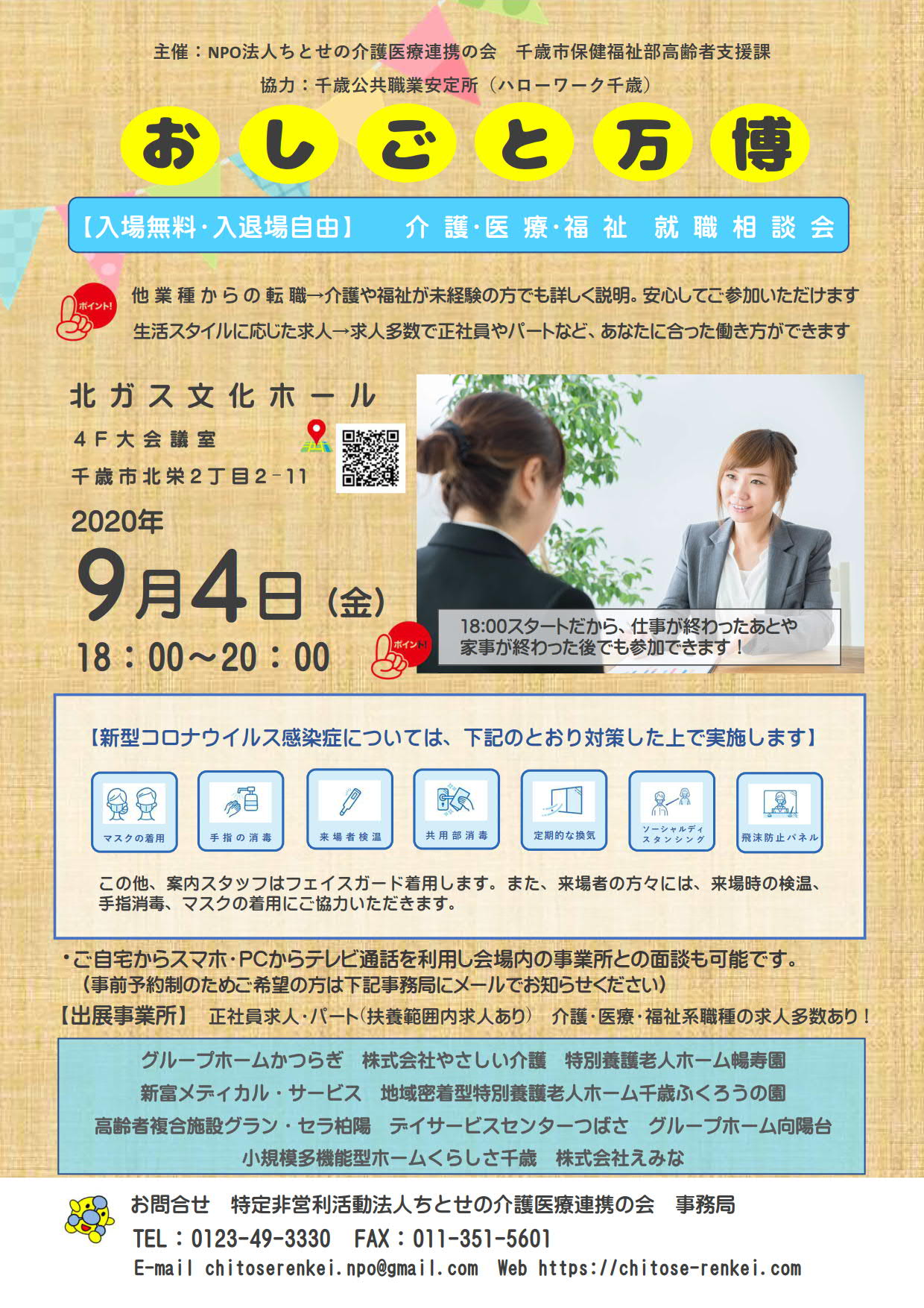 介護・医療・福祉 就職相談会「おしごと万博」のお知らせ(R020904)