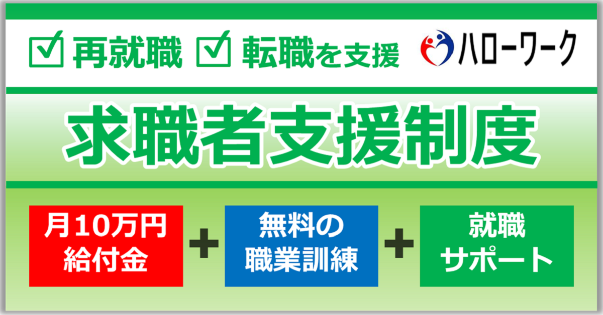 求職者支援制度は、雇用保険を受給できない求職者の方が、月10万円の生活支援の給付金を受給しながら、無料の職業訓練(求職者支援訓練)を受講する制度です。