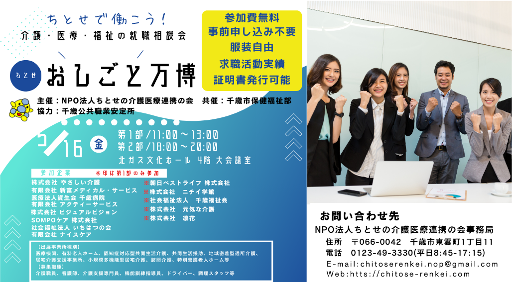 NPO法人ちとせの介護医療連携の会事務局 TEL:0123-49-3330