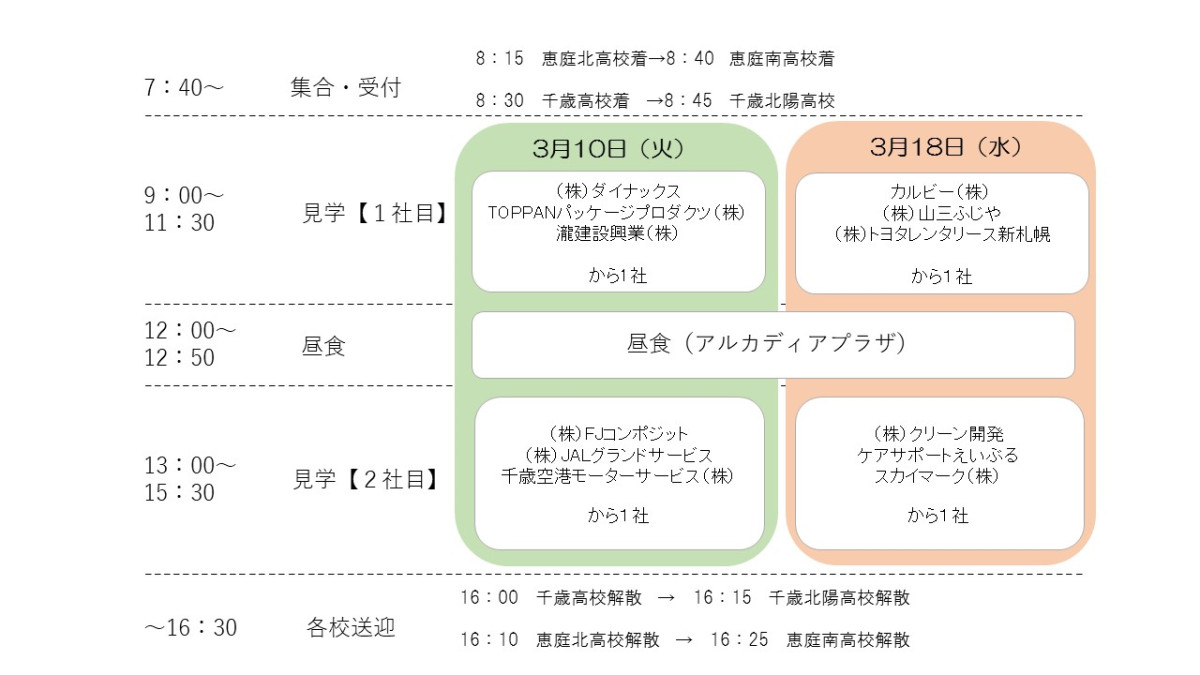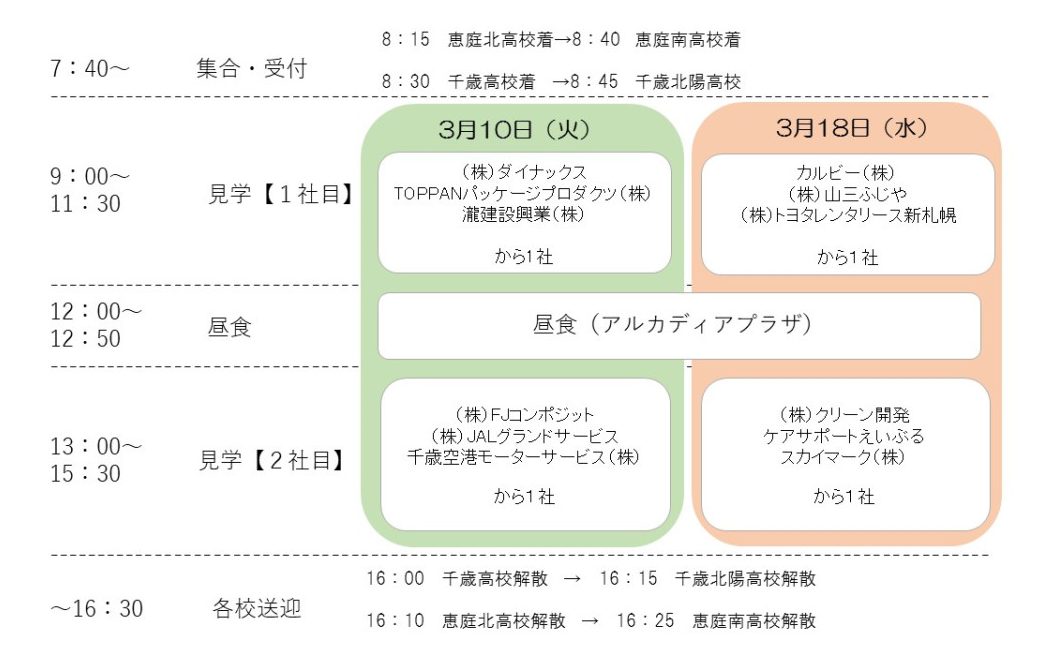 千歳市では、高校生の皆さんが千歳市内の企業を知り、就職を考える「きっかけ」づくりを目的とし、【お仕事見学バスツアー】を開催することといたしました。