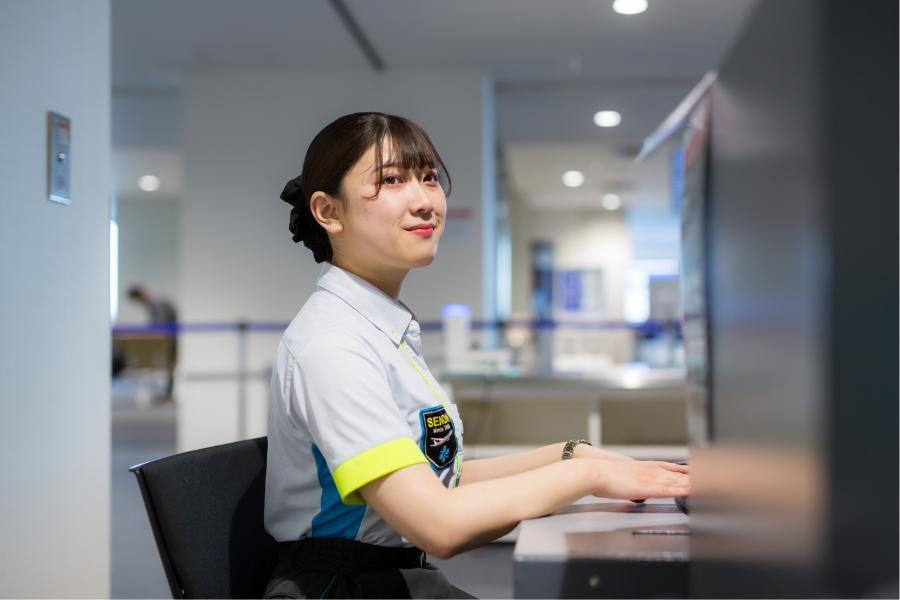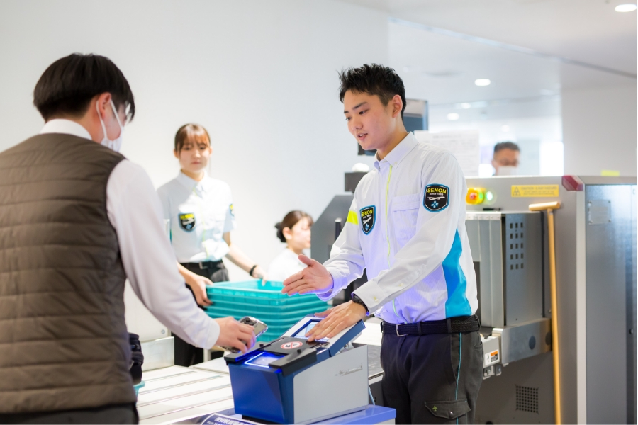 新千歳空港では年間2200万人以上が利用する空港の保安検査を担い、多くの人々の安心を守っています。