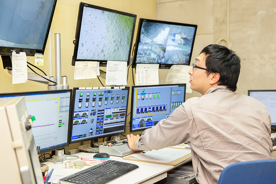 主にモニターを監視しながら、マシンを操作します。