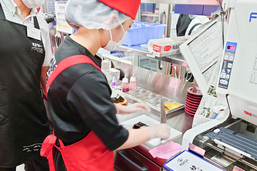 スシローでは、マグロをはじめ、ひとつひとつのネタに細かい仕込みルールがあるため、いつでも本当においしい状態でお客様にご提供することができます。シャリは、スシロー独自のブレンド米を使い、店舗ごとに炊き上げ、すしが一番おいしいタイミングで握ります。