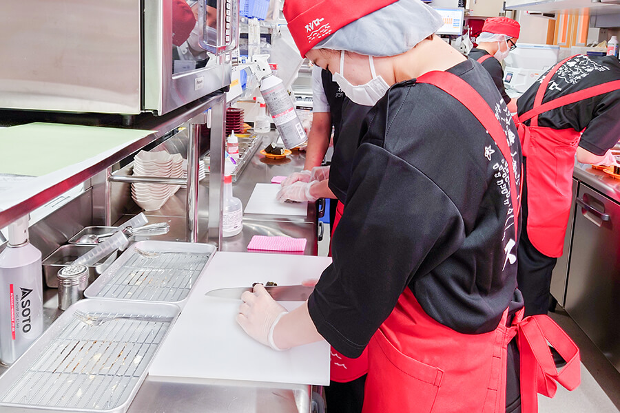 時代のニーズに合わせ、設備の強化を進めておりますので、自動化されていく作業も多数ありますが、人の温かさを大切にしたいという思いもあり、各テーブルへのオススメ商品のご案内などをスタッフにお願いすることもあります。