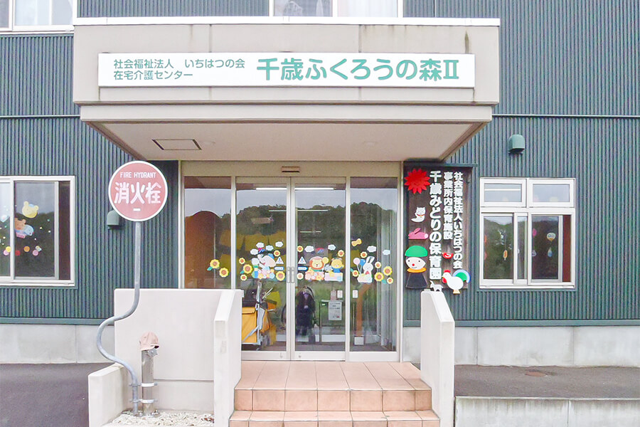 一般的に特養と呼ばれる、地域密着型特別養護老人ホーム「千歳ふくろうの園I」「千歳ふくろうの園Ⅱ」、ケアハウス「千歳ふくろうの園」、養護老人ホーム「千歳千寿園」、デイサービスセンター「千歳ふくろうの森」がひと続きの建物にあり、同じ敷地内には、単身者用の社宅や職員のお子さんも通う、小規模認可園「千歳みどりの保育園」もあります。