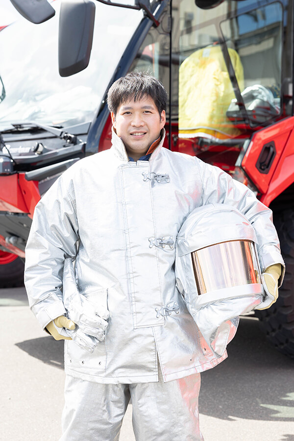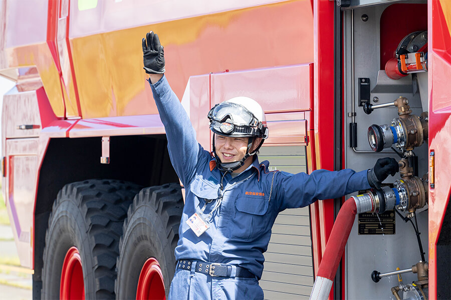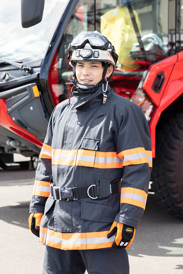 前職で地方の消防に勤務していましたが、結婚をきっかけに地元へ戻りたいと考えていた時にこの仕事に出会いました。前職での経験を活かせるだけでなく、空港という特殊なフィールドで働けることに大きなやりがいを感じています。