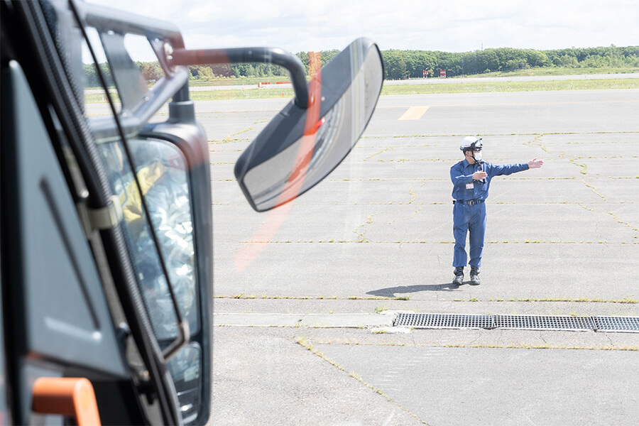 普段の業務は一般の人は立ち入りのできない空港の敷地内で訓練や点検を行っており、作業するすぐ横を航空機が飛び立っていく様子も見られます。