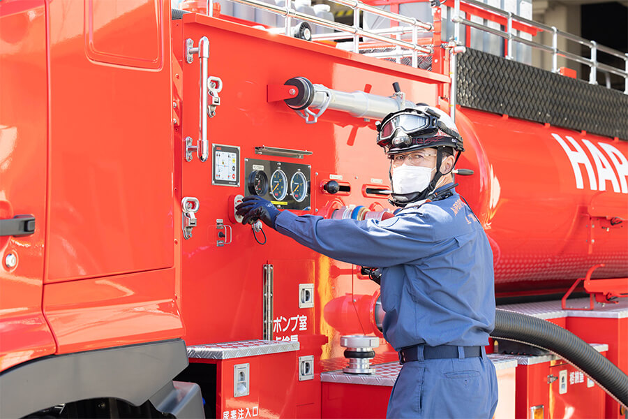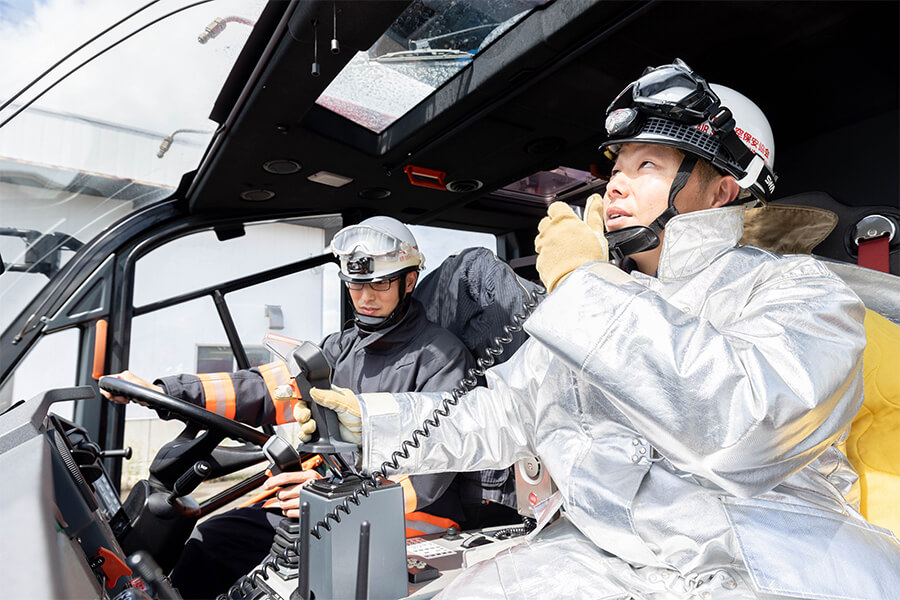 *大型化学消防車およびフルトレーラーの運転操作を伴うため、大型、けん引免許が必要となります。