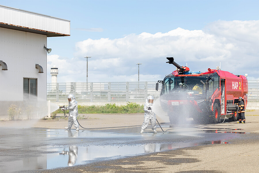 また、定期的に長崎空港に隣接する国土交通省航空局空港保安防災教育訓練センターでの訓練研修に参加し、経験年数や練度・知識・技能に応じた訓練コースを受講することで、ステップアップも望めます。