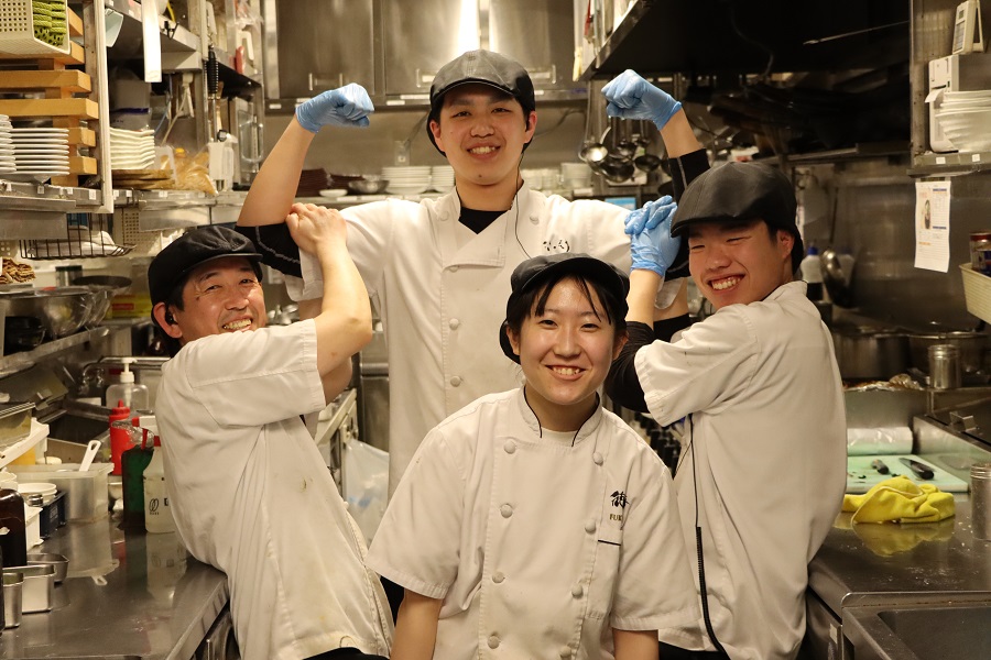 共に成長し喜びを分かち合う、当店の特別なチームで一緒に働きませんか? 当店のキッチン・ホール社員はとても仲が良いです。仕事に関する悩みもみんなでひとつひとつ解決できるような関係で仕事しやすいと思います。休日も希望を考慮したシフト作りをしています。