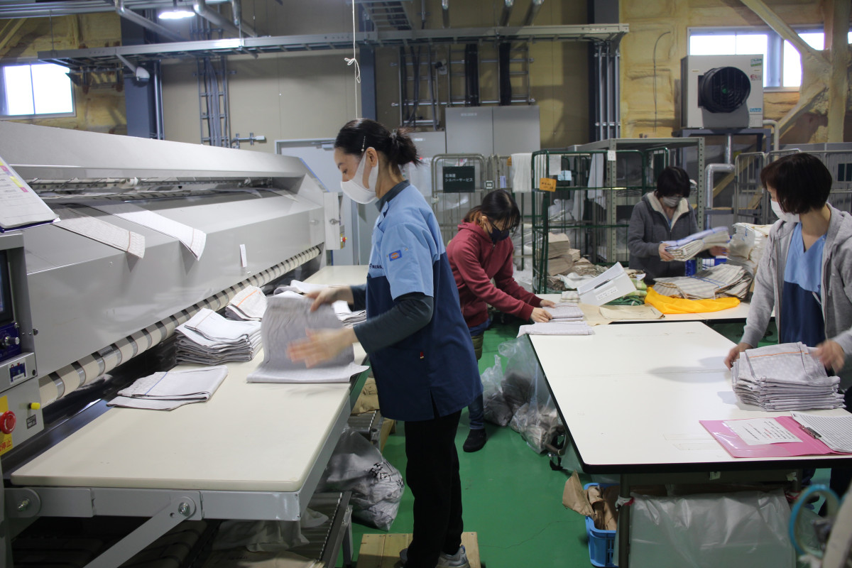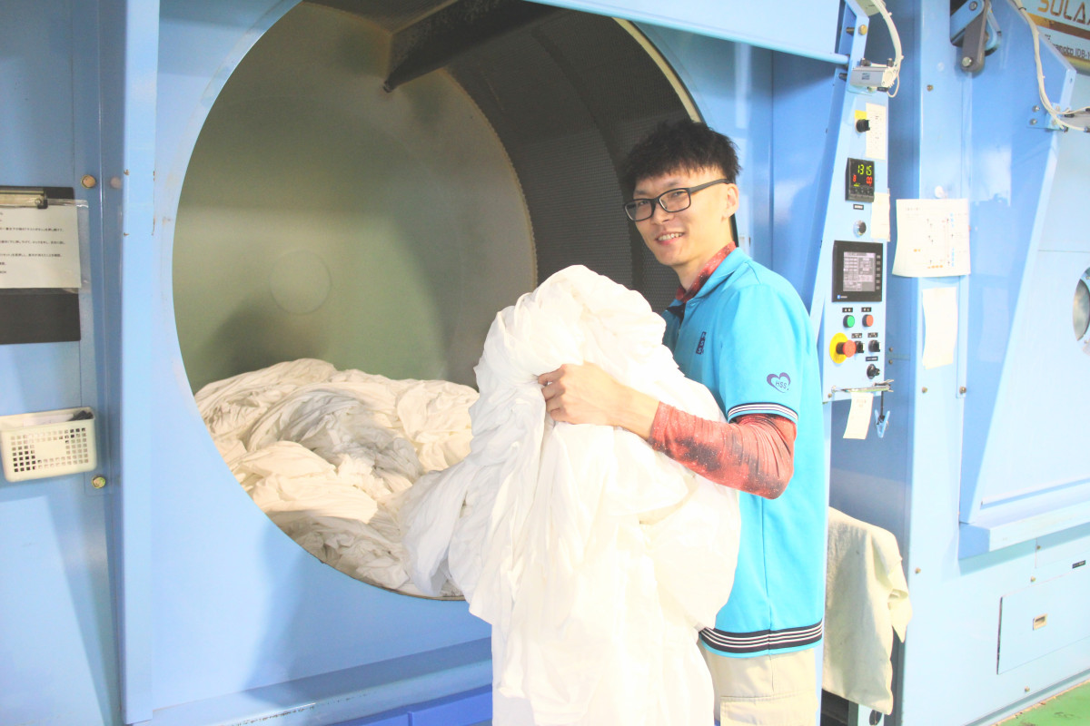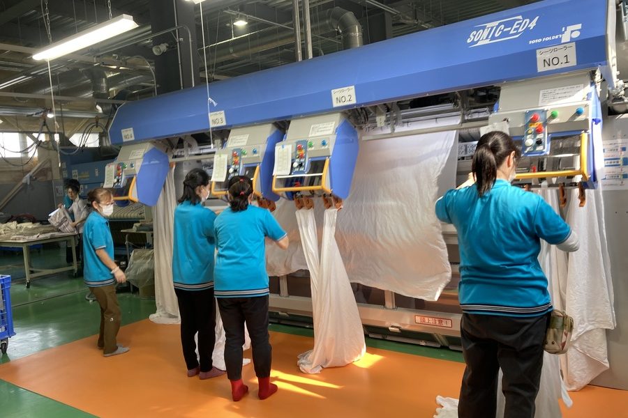 千歳工場は2022年に新工場を立ち上げ、最新の洗濯設備及び自動仕上機器を導入しております。