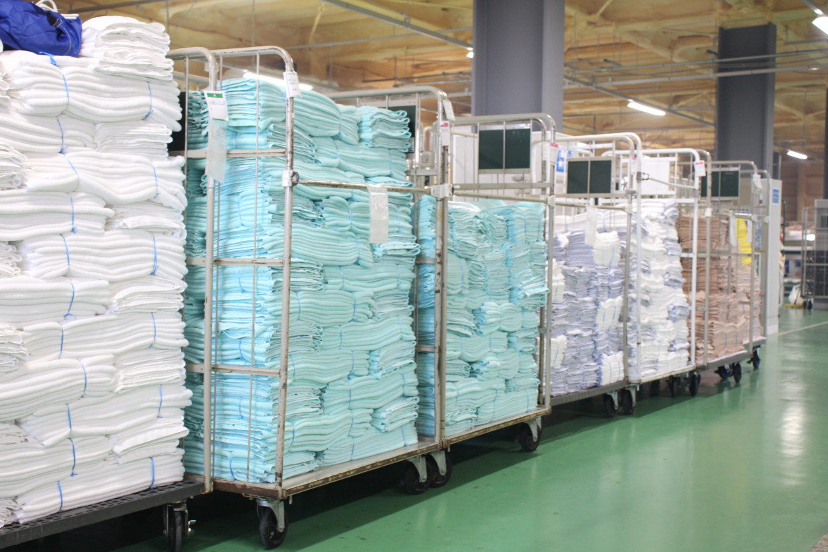 当社は病院や老健施設を主な取引先に、寝具(布団、シーツ、枕など)をクリーニング付きで賃貸するリネンサプライ事業を展開しています。また、医師や看護師向けのユニフォーム、病院用カーテンのリースも行い、福祉・介護用品や医療機関向け家具の販売も手掛けています。千歳臨空工業団地にクリーニング工場を保有し、道内の多くの取引先に清潔な寝具やリネン類を提供することで、衛生管理が求められる医療施設のニーズに応えています。