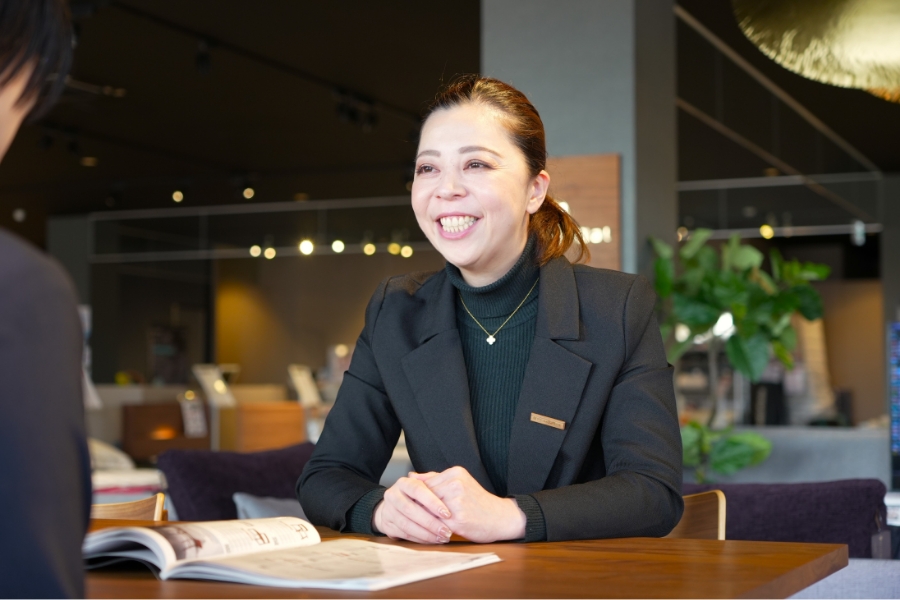 今はお客様への接客だけでなく、住宅メーカーや設計士さんとの法人営業も担当しています。家具を通じてお客様の暮らしを彩るお手伝いができるのは、とてもやりがいを感じる瞬間です。