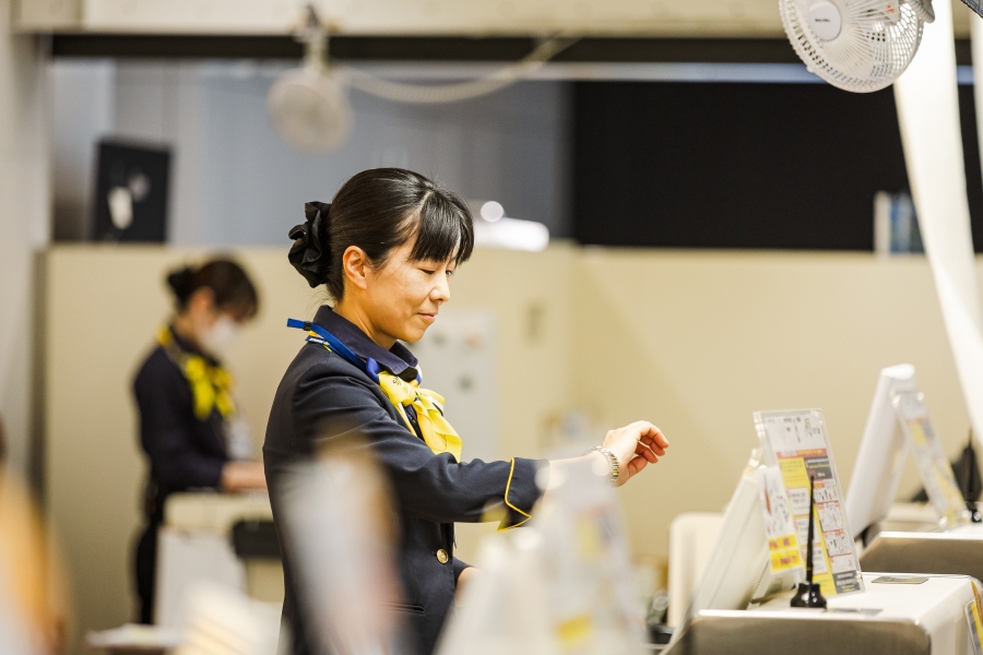 新千歳空港には「千歳空港支店」を構え、旅客対応から地上作業までを自社社員で一貫して行っています。