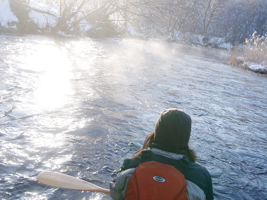 冬の千歳川をガイド同乗でカヌーツーリング。野生動物にも会えるチャンスです。