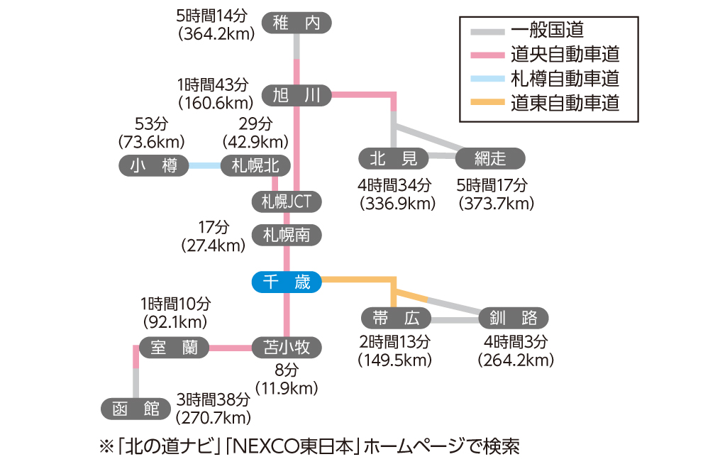 道央自動車道は新千歳空港ICも開通してさらに便利に。
