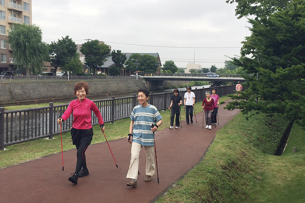 また、高齢者の方が要支援・要介護状態にならないよう介護予防を推進する介護予防センターを設置し、地域包括支援センターや老人クラブ、民生委員の方などと連携しながら全市的な介護予防や地域の住民同士による健康づくりを推進しています。ここでは、高齢者向けの筋力やバランス能力の向上に役立つ「いきいき百歳体操」や栄養士による「栄養教室」などの介護予防教室の開催、ノルディックウォーキング講習会やポールの無料貸出などのほか、高齢者の方が主体となって地域で介護予防運動を自主的に行えるよう、地域活動の担い手となる介護予防リーダーの養成を行っています。